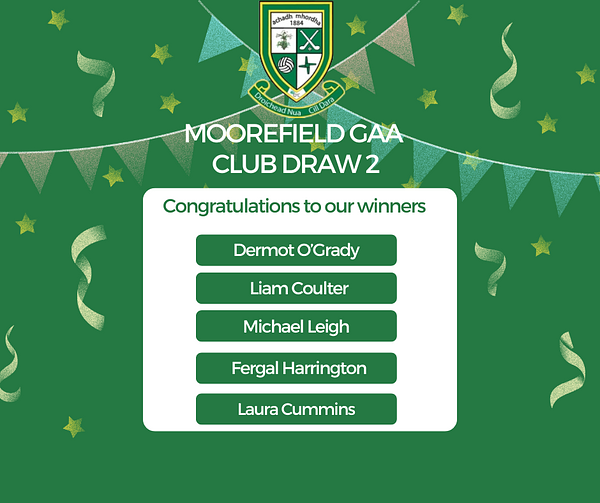 There's still two more draws to go both with Kildare and Moorefield, best of luck to everyone.
